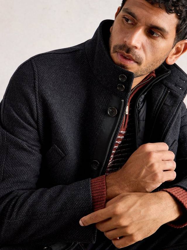 Подчеркните свою повседневную жизнь с этим пальто из смесовой шерсти, которое обеспечит тепло, комфорт и вневременной стиль. Продуманная подкладка позволяет легко комбинировать вещи, а застежки на молнии и пуговицы обеспечат вам чувство защищенности и готовность к любым неожиданностям.