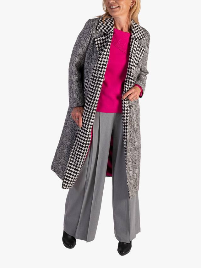 Этот двубортный пиджак, воплощение зимнего стиля, неподвластен времени и защищает от холода благодаря длине до колена. Он полностью на подкладке и дополнен классическим воротником с лацканами и ярким узором гусиная лапка. Он сшит из прочной смесовой ткани, которая обеспечит вам тепло, комфорт и элегантный вид в прохладные дни. Этот классический предмет верхней одежды, дополненный двумя функциональными карманами, очерченными узором гусиная лапка в тон воротнику, разрезом сзади и застежкой на пуговицы, обеспечит вам элегантный и стильный вид на долгие годы.