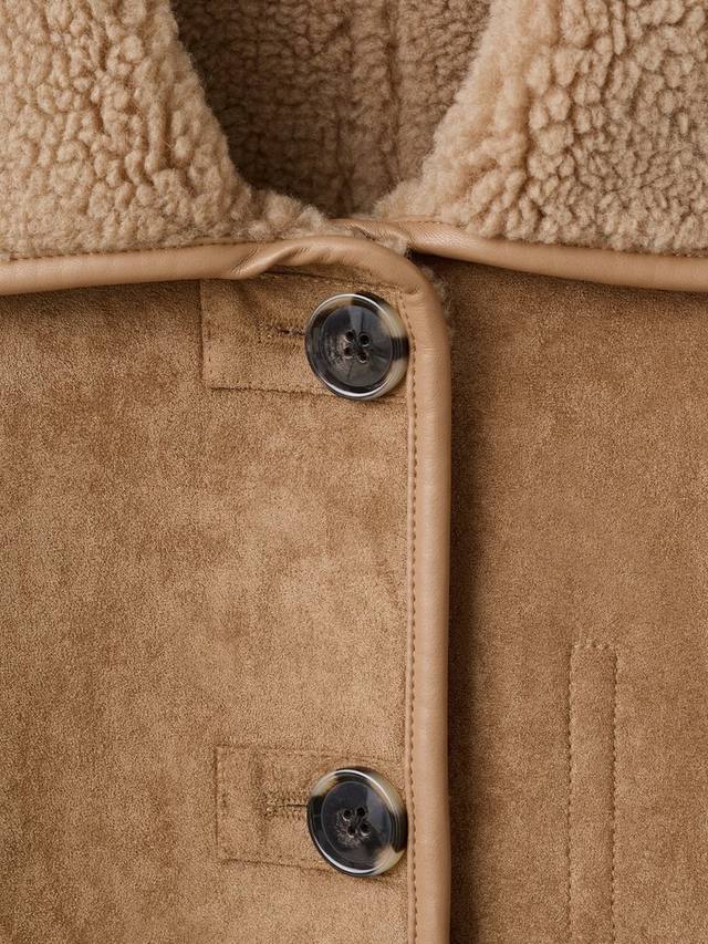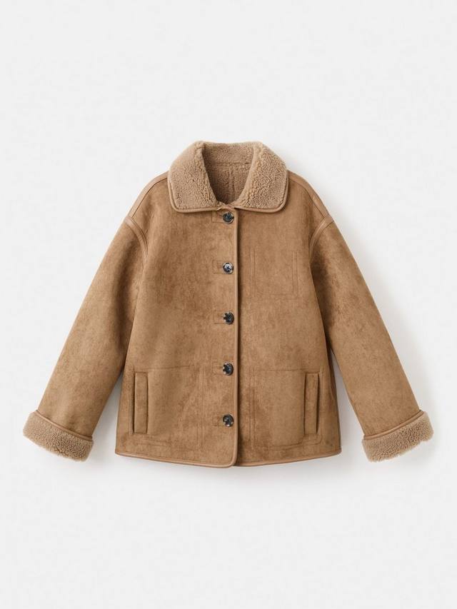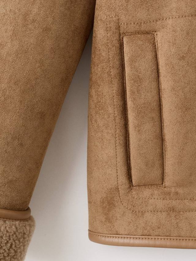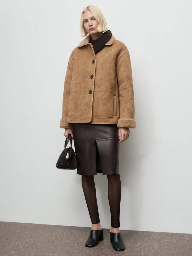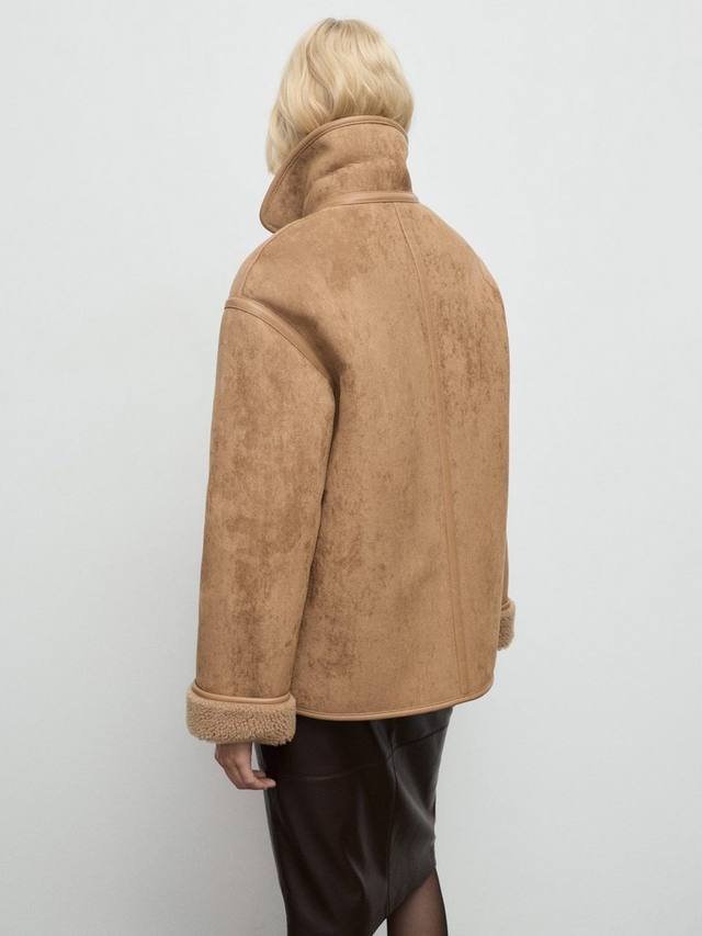 Куртка с текстурированным замшевым эффектом от Mango. Четкий крой сочетается с непринужденным комфортом, а уютный воротник из искусственной овчины и удобная застежка на пуговицы позволят вам быть готовыми к любым ситуациям.