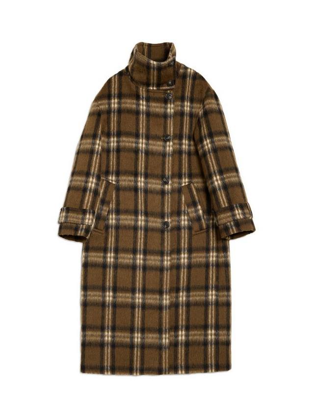 Роскошное пальто свободного кроя с эффектным клетчатым узором. Благодаря свободному силуэту, оно обеспечивает комфортную и свободную посадку, которую легко надевать поверх трикотажных изделий. Два кармана, воронкообразный вырез и манжеты на хлястиках создают изысканный образ.