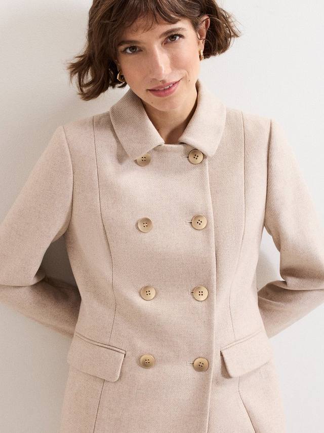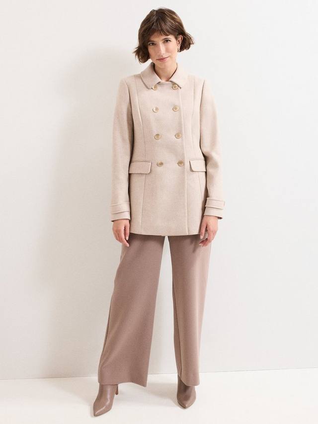 Пальто Aurelie, выполненное из теплой шерстяной смеси, имеет обтекаемый, структурированный силуэт. Двубортный жакет с пуговицами придает ему изысканный вид, а его элегантная простота идеально подходит для холодных месяцев.