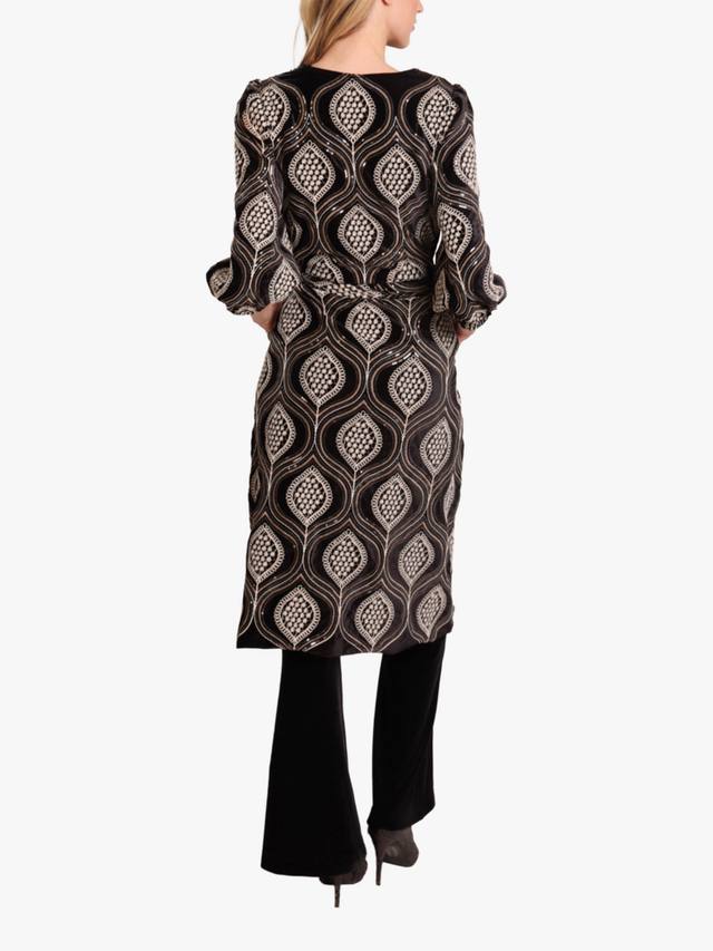 Пальто-платье Duster – великолепный предмет гардероба для зимнего гардероба. Платье выполнено из красивого хлопка с вышивкой и пайетками. Рукава-фонарики 3/4 с эластичными манжетами и простой застежкой на пояс. Идеально подходит для создания потрясающего зимнего образа в многослойном исполнении.
