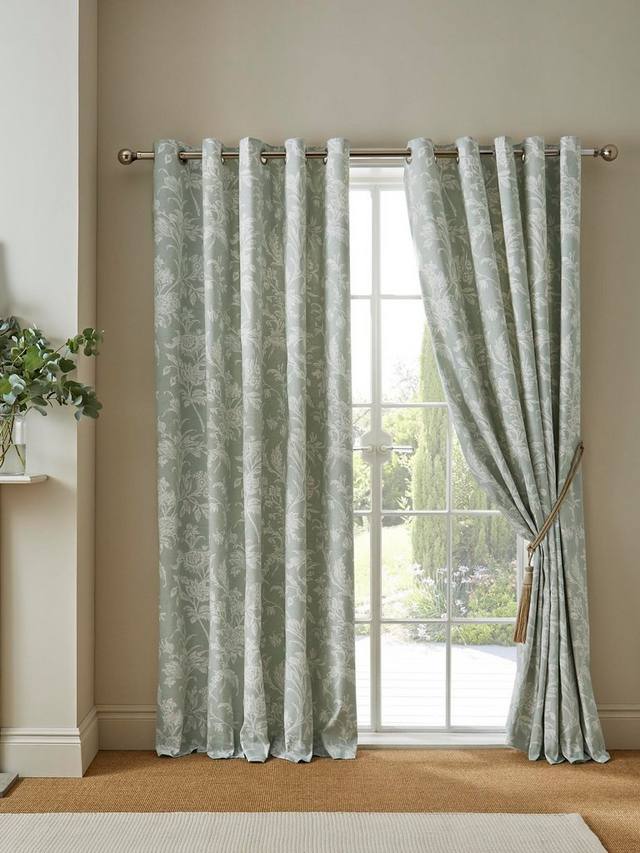 Эти шторы на подкладке с люверсами, вне времени и элегантности, украшены цветочным принтом с изогнутыми стеблями тюльпанов, примул и лапчатки. Неяркий, прорисованный вручную рисунок напечатан на успокаивающем фоне, создавая красивый, теплый и естественный вид.