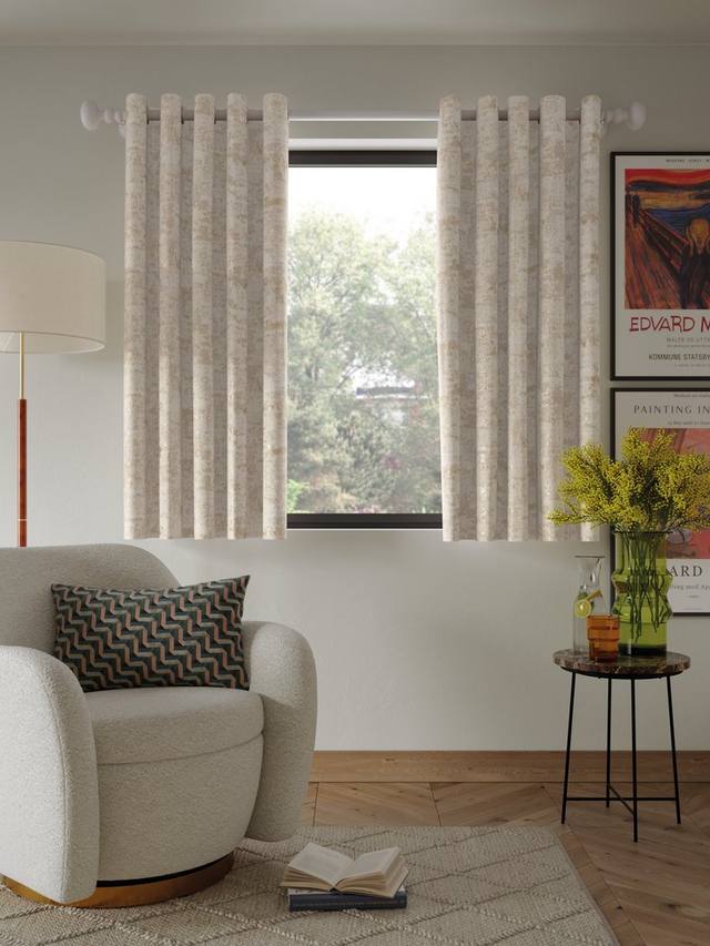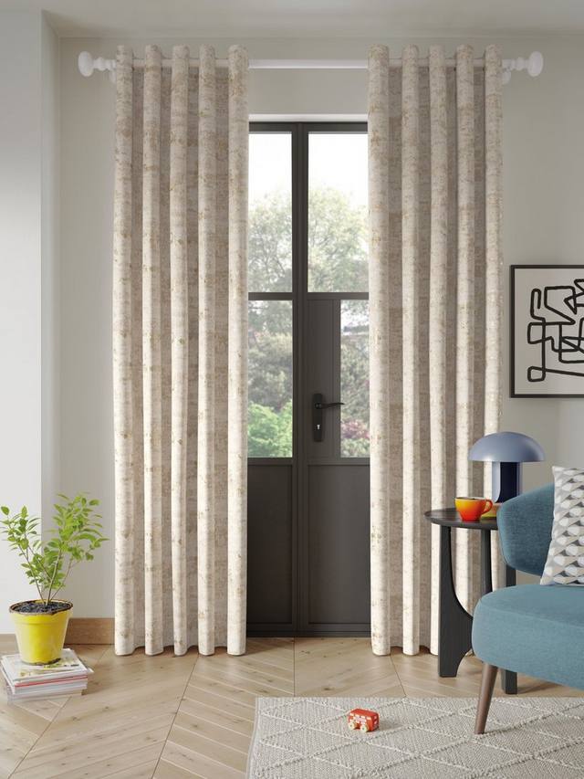Эти жаккардовые шторы с люверсами имеют текстурированную отделку с металлическим оттенком, полностью на подкладке для улучшенной драпировки.
