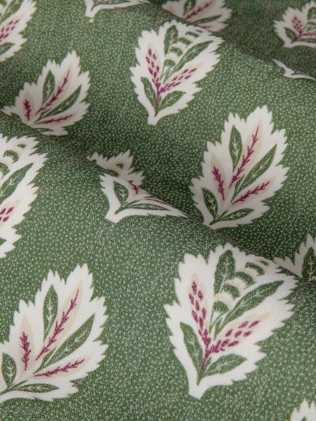 Необычное название сидячий лист означает, что листовая пластина непосредственно соединяется со стеблем растения, как в мотиве дубовых листьев Сандерсона. Стилизованные листья, имитирующие шелкографию и ручную работу, создают современный полосатый эффект на пятнистом фоне, вдохновлённом архивными образцами.