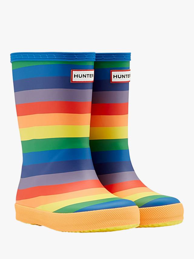 Эти детские ботинки с ярким и весёлым радужным дизайном идеально подходят для игр в лужах. Изготовленные вручную из натурального каучука, плоская подошва и закруглённый носок обеспечивают малышам свободу движений, а мягкая полиэстеровая подкладка обеспечивает полный комфорт.