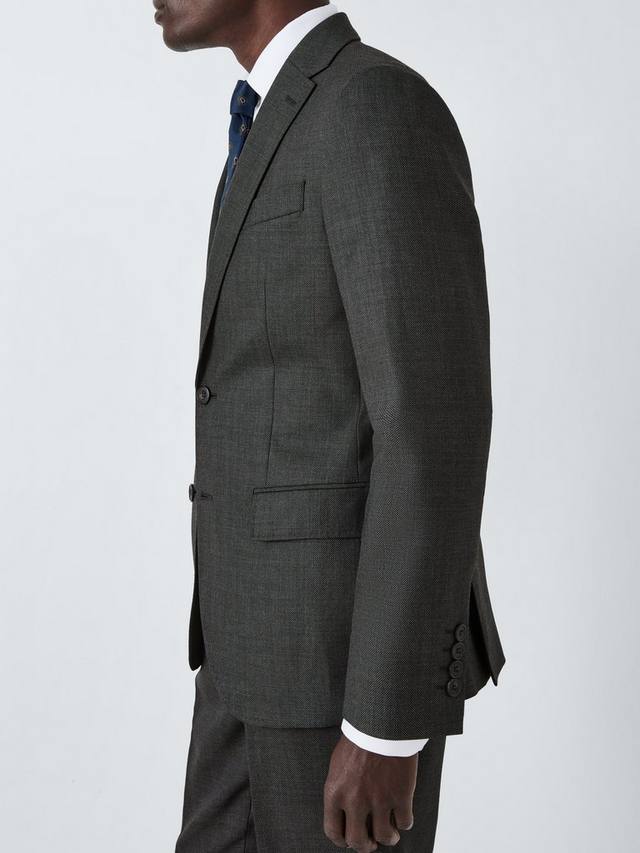 Наш пиджак, сотканный из высококачественной шерсти Super 100 с современным рисунком птичий глаз, имеет отложной воротник, карманы с клапанами на бедрах и прорезной карман на груди.