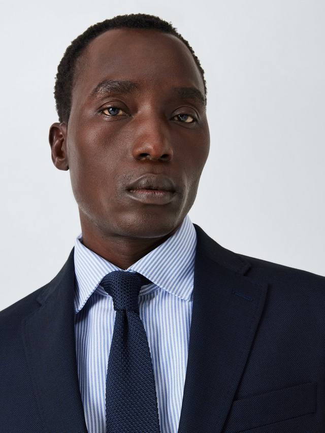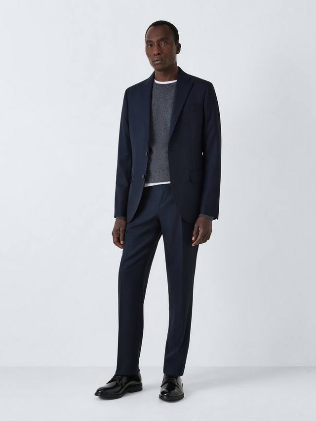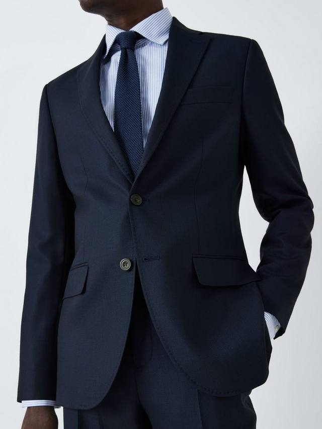 Наш пиджак, сотканный из высококачественной шерсти Super 100 с современным рисунком птичий глаз, имеет отложной воротник, карманы с клапанами на бедрах и прорезной карман на груди.