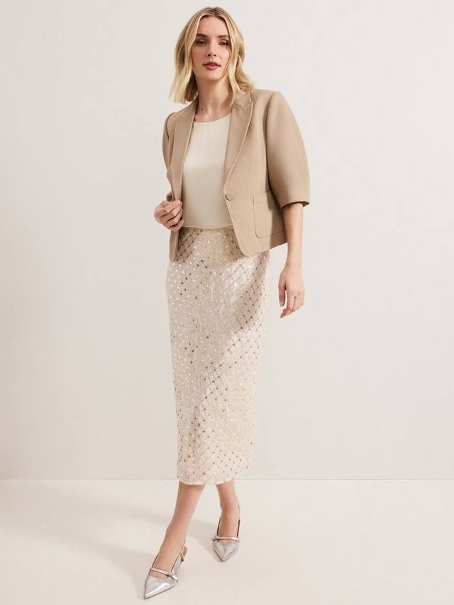 Добавьте этот пиджак в свой капсульный гардероб. Этот пиджак, скроенный по фигуре, дополнен укороченными рукавами-буфами, создающими едва заметный объём. Застёгивается на одну центральную пуговицу. В сочетании с праздничным или повседневным образом он придаст изделию изысканность.