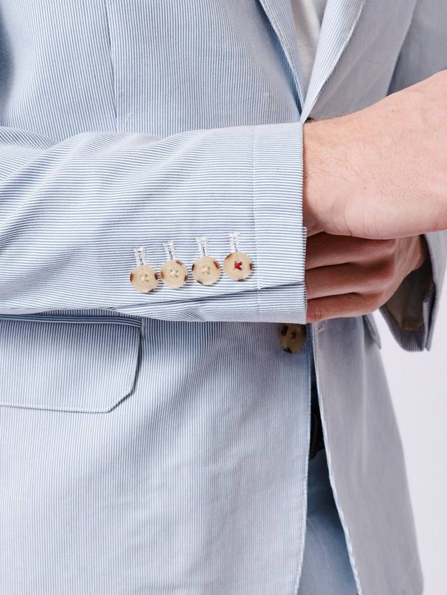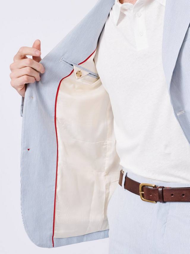 Блейзер Pasmore в тиковую полоску – классика лета. Этот неструктурированный блейзер идеально сочетает в себе элегантный повседневный стиль. Изготовленный из 100% хлопка и полуподкладки, он идеально подходит для лета. Этот блейзер можно сочетать с брюками Owsten, создавая идеальный летний костюм.
