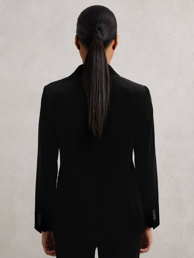 Этот бархатный однобортный пиджак от Reiss обеспечит строгий стиль и комфорт для любого мероприятия. Благодаря классическому крою и жесткому воротнику вы будете готовы к любому дню с уверенностью и легкостью.