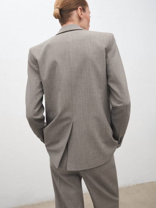 Этот однобортный пиджак производит впечатление, привнося в ваш гардероб четкие полоски и гибкость. Его элегантный V-образный вырез и аккуратная застежка на пуговицы подойдут для повседневной носки, будь то проведение встреч или участие в торжественных мероприятиях.