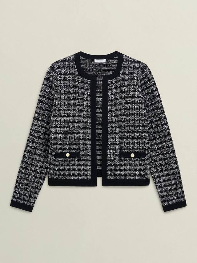 Шикарные многослойные образы начинаются с куртки Audra. Искусно выполненная из двухцветной пряжи твидовая отделка придает текстурную изысканность любому образу.