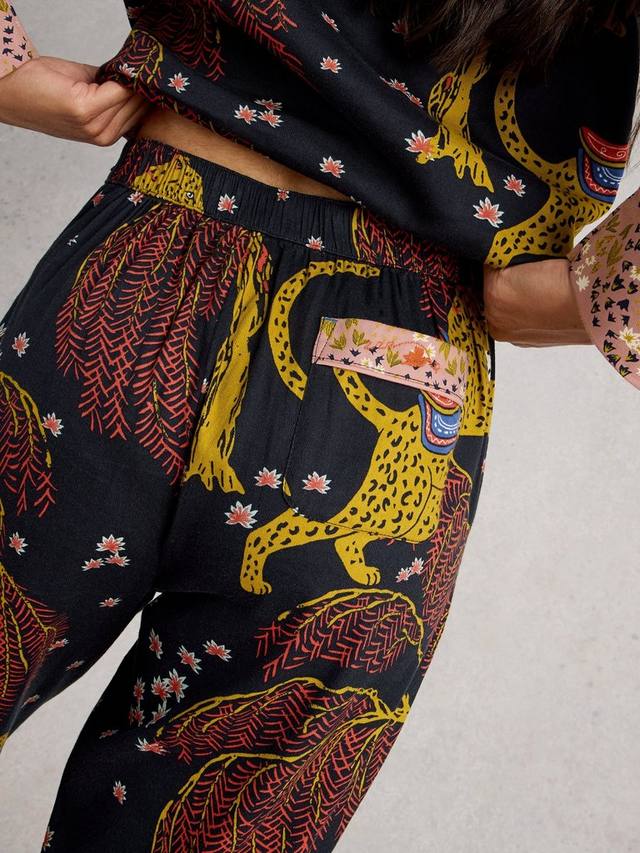 Пижамные штаны с принтом, контрастными манжетами, фирменной вышивкой и супермягкой отделкой. У них также есть карманы. Для перекусов и других ночных мелочей.