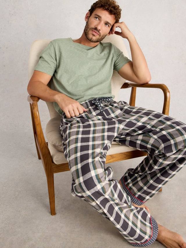 Пижамные штаны с удобной талией на шнурке и узорами в разных местах, которые вместе придают этому стилю домашней одежды настоящий характер.