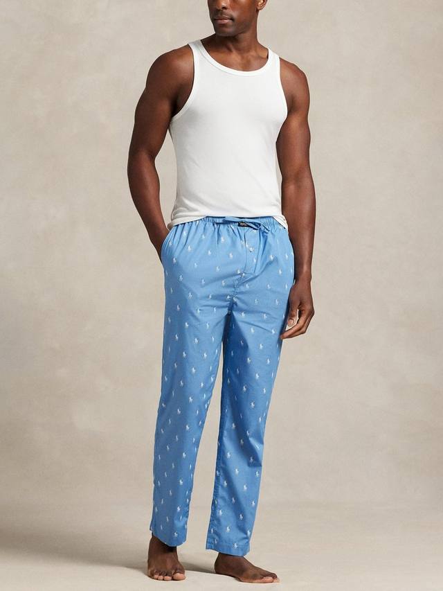 Эти пижамные штаны изготовлены из лёгкого хлопкового тканого материала и украшены узором с фирменной фигуркой пони Ральфа Лорена. Эластичный пояс на шнурке с вытканной этикеткой Polo RL спереди.