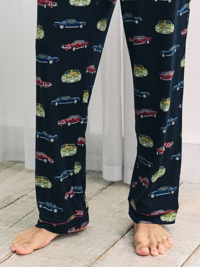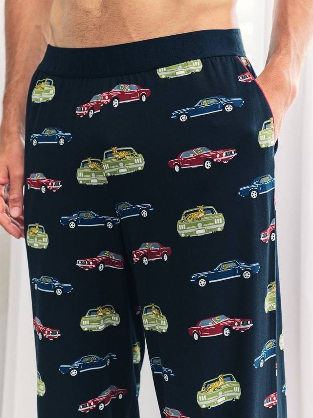 Эти длинные пижамные штаны из фирменного мягкого и эластичного трикотажа Chelsea Peers из переработанных волокон созданы для комфорта. Удобный эластичный пояс и удобные боковые карманы идеально подходят для непринужденного отдыха. Нарисованный от руки принт изображает леопардов, отдыхающих на винтажных спортивных автомобилях, ведь даже скоростной трассе иногда нужно замедляться. Просто полежите в постели, и всё готово.