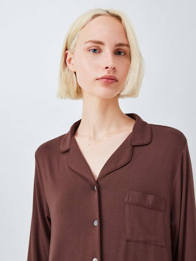 Этот комплект, который обязательно должен быть в вашем пижамном ящике, включает в себя рубашку с воротником Revere, натуральными пуговицами-ракушками и пару плавок с эластичным поясом и подвернутыми краями.