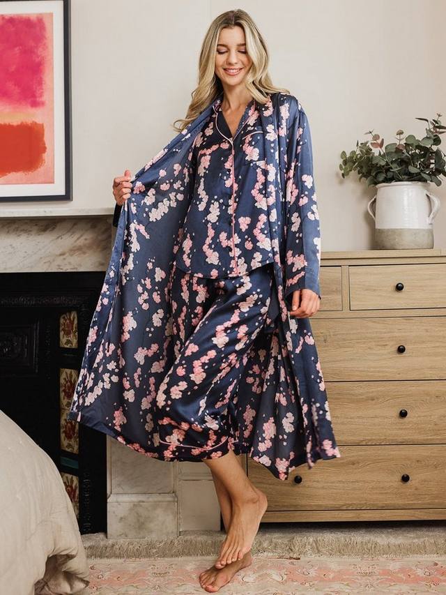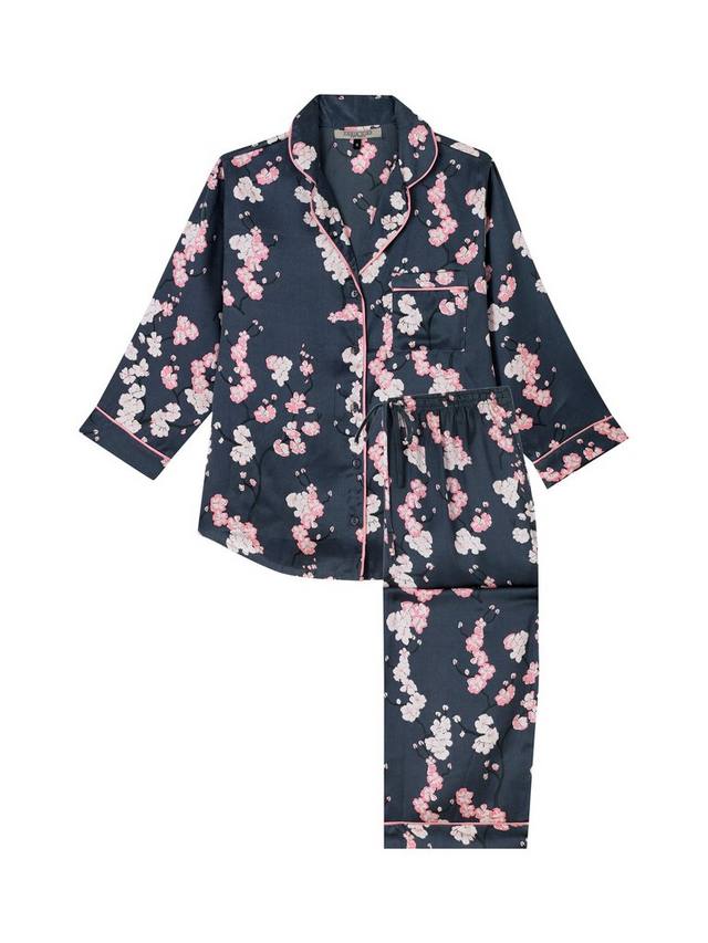 Классическая пижамная рубашка на пуговицах с рукавами 3/4 в сочетании с укороченными брюками с эластичным поясом и практичными карманами. Этот пижамный комплект капри отличается свободным и свободным кроем, а контрастная окантовка создаёт классический образ для сна.