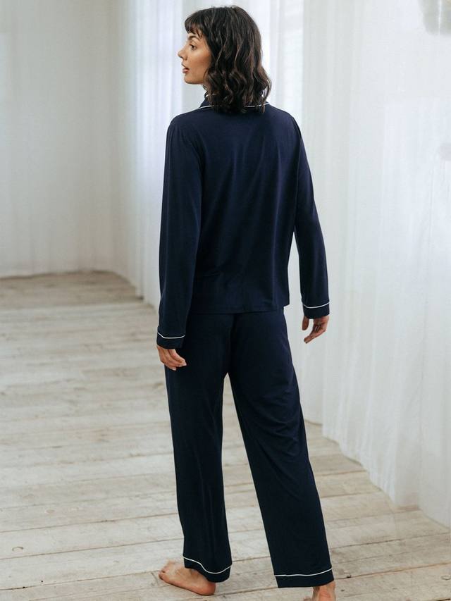 Этот элегантный и неподвластный времени пижамный комплект на пуговицах изготовлен из волокна TENCEL Modal — невероятно мягкой, шелковистой и биоразлагаемой ткани. Изготовленные из волокон бука, эти пижамы терморегулирующие и долговечные, обеспечивая крепкий ночной сон на долгие годы.