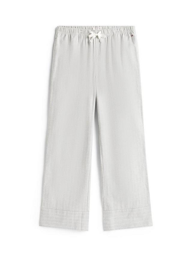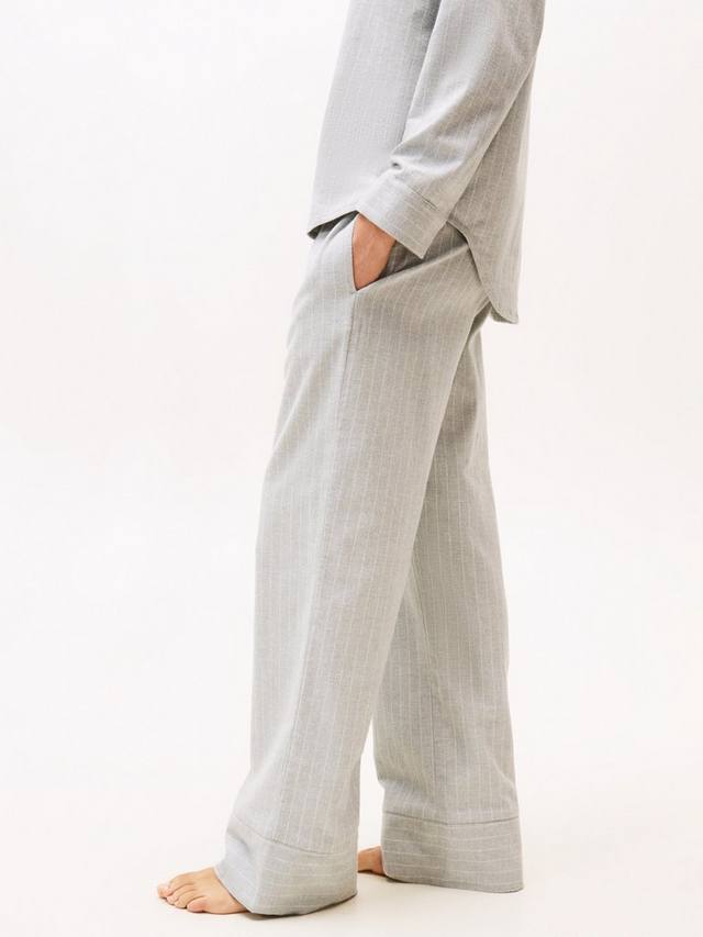 Изготовлена из чистой хлопковой фланели с узором ёлочка и полосками по всей поверхности. Рубашка имеет заостренные лацканы и рукава с манжетами. Свободный крой со слегка спущенной линией плеч. Брюки имеют талию на резинке и контрастную кулиску. На обоих изделиях присутствует фирменный стиль Tommy Hilfiger.