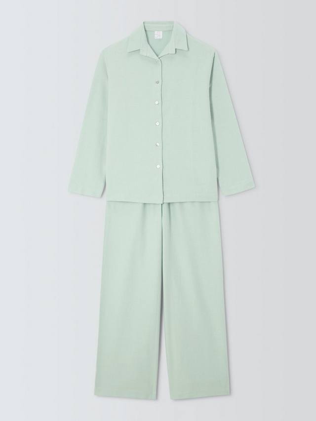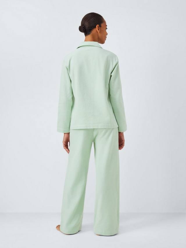 Этот пижамный комплект из чистого хлопка с классической текстурой ёлочка состоит из двух частей. Верхняя часть имеет элегантный воротник и обтянутые тканью пуговицы, а нижняя — полностью эластичный пояс со шнурком и удобными боковыми карманами.