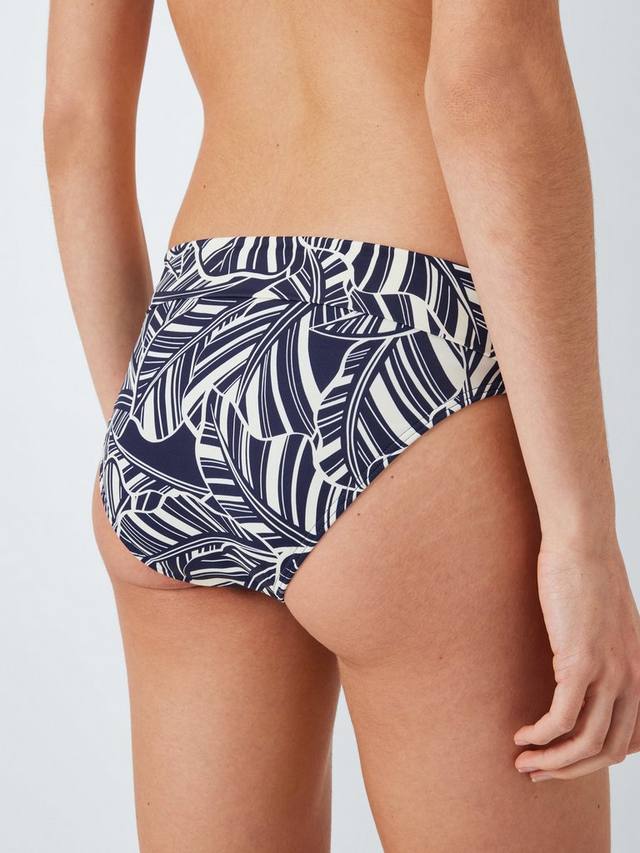 Эти плавки бикини на подкладке с принтом, вдохновленным листьями, имеют тонкую отложную вставку, поэтому вы можете выбрать модель с высокой или низкой талией.