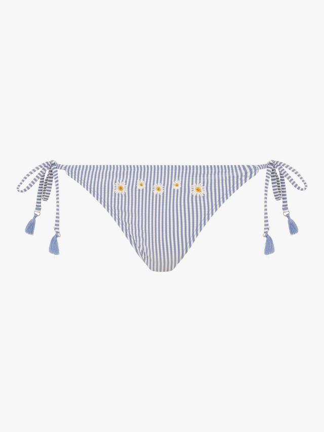 Эти плавки-бикини с вышитыми крошечными ромашками на полосатом фоне дополнены завязками по бокам для регулируемой посадки.