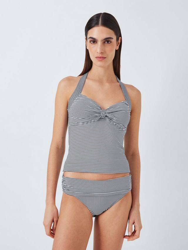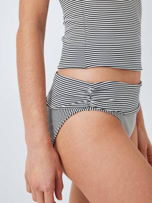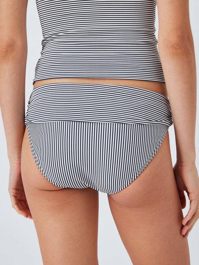 Наши отложные плавки-бикини с отворотами невероятно подчеркивают фигуру благодаря свежей полосатой ткани из сирсакера. Мы создали их так, чтобы вы могли регулировать степень защиты в соответствии со своей фигурой с помощью отложной вставки, а подкладка спереди и сзади обеспечивает гладкую поверхность. Создайте свой образ с нашим подходящим топом-бикини.