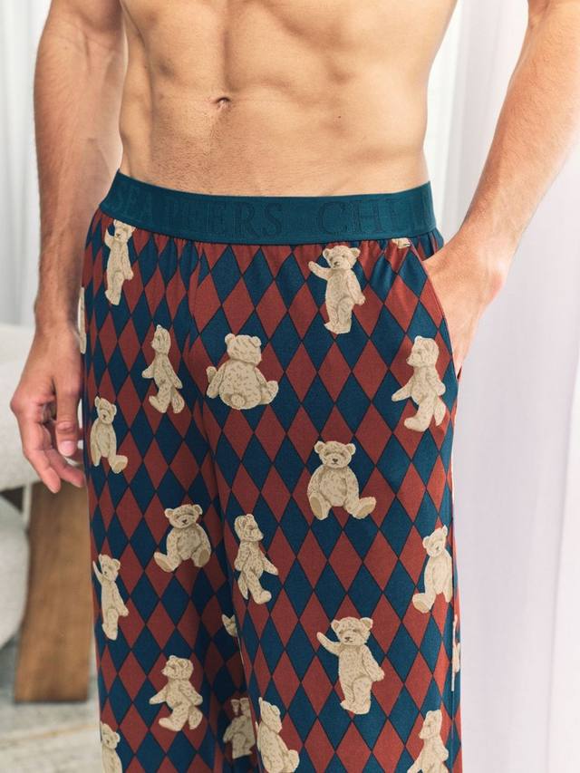 Эти прямые брюки с ромбовидным принтом и нарисованными от руки плюшевыми мишками, которые не относятся к себе слишком серьёзно, придают им весёлый вид. Эластичный пояс и боковые карманы делают эту модель весёлой и невероятно практичной домашней одеждой.