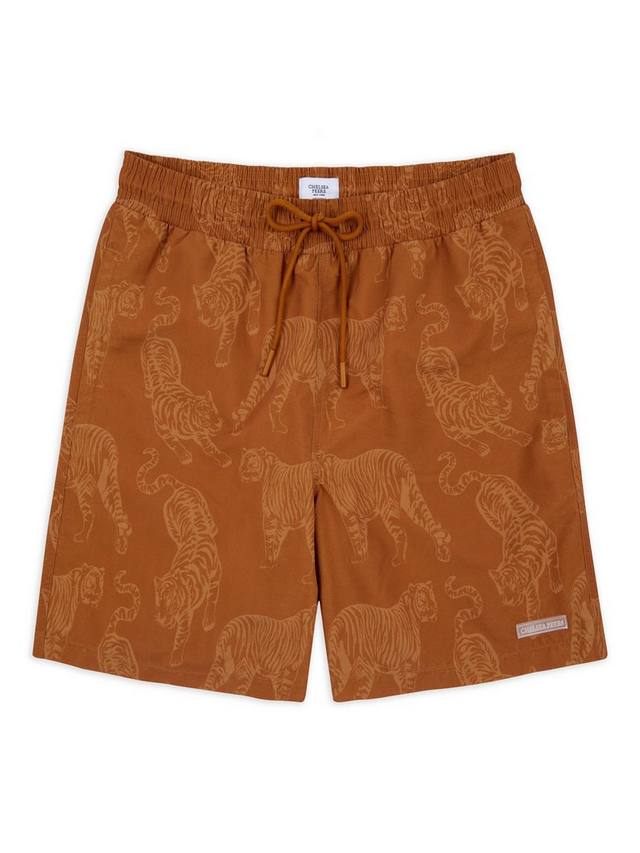 Эти шорты для плавания с нарисованным от руки принтом тигра в тон. Эти свободные шорты для плавания изготовлены из фирменной переработанной ткани Chelsea Peers и оснащены шнурком на талии для комфортной посадки.