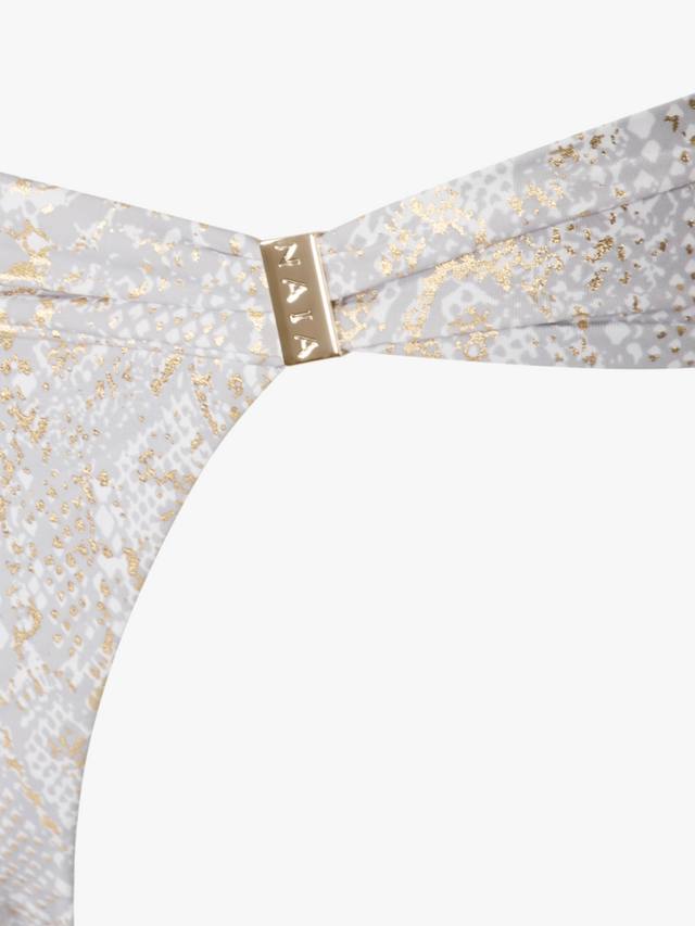 Трусики средней посадки, затягивающиеся на талии, с идеально расположенной отделкой на бедрах. Складки на спине подчеркивают фигуру.