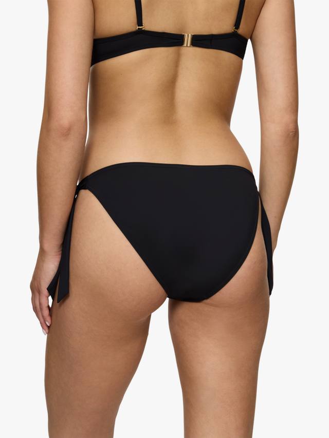 Эти трусики средней застежки с регулируемыми боками и плетеной отделкой на талии. Изготовлены из частично переработанного полиамида, мягкие на ощупь и долговечные.