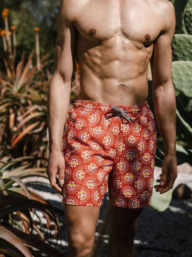 Эти свободные шорты для плавания изготовлены из фирменной переработанной ткани Chelsea Peers и украшены напечатанным вручную рисунком в виде веера. Талия на шнурке обеспечивает удобную посадку.