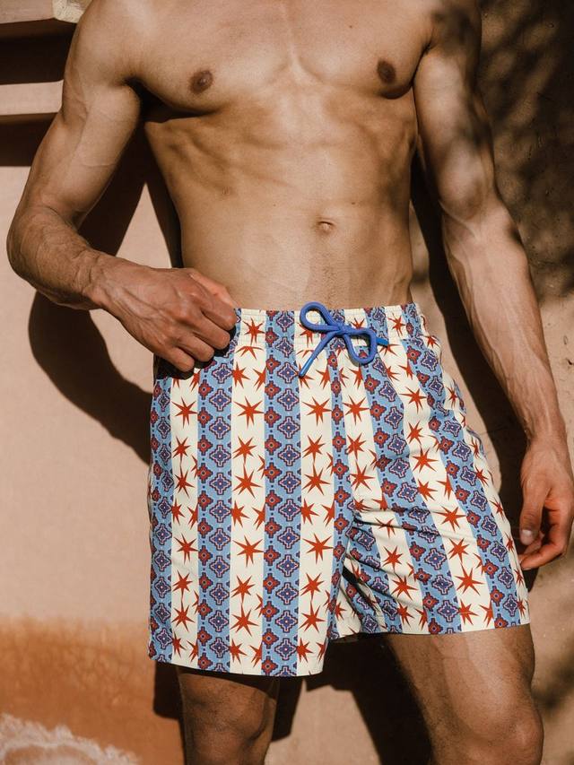 Эти свободные шорты для плавания изготовлены из фирменной переработанной ткани Chelsea Peers и украшены нарисованным от руки рисунком из переплетающихся звёзд и полос. Талия на шнурке обеспечивает удобную посадку.