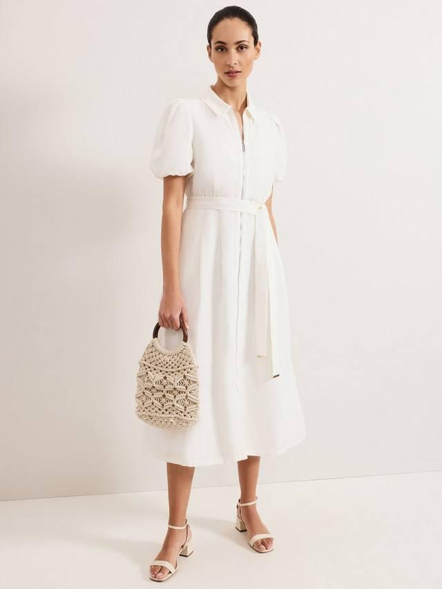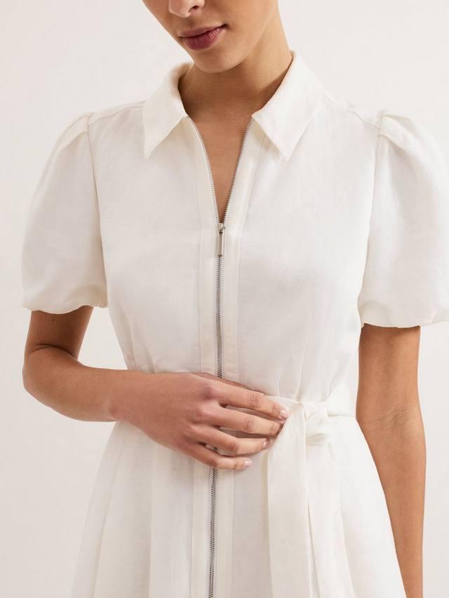 Платье с богатой льняной основой, которое так нужно вашему гардеробу. Современные рукава-фонарики добавляют лёгкий объём классическому силуэту рубашки, дополненному молнией и серебристым поясом. Наша новая лёгкая льняная смесь разработана таким образом, чтобы минимизировать сминание, идеально подходит для тёплых дней. Просто добавьте ваши любимые сандалии.