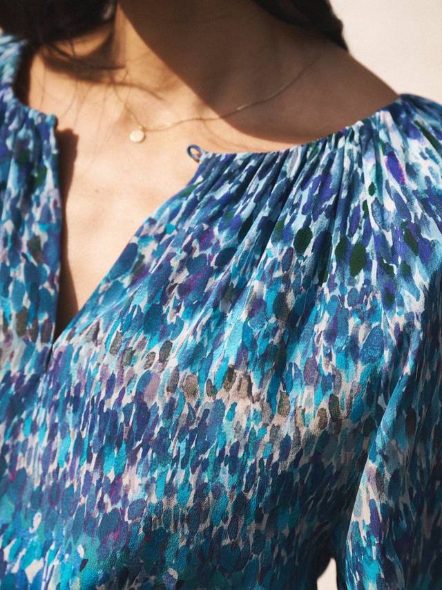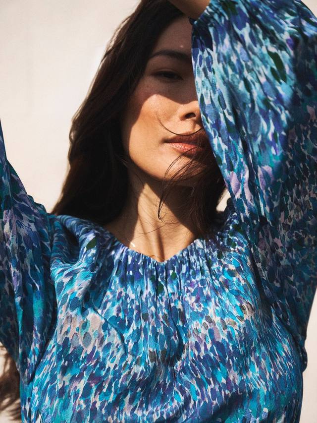 Изготовлено из чистого шелка с любимым акварельным принтом. Благодаря сборке на круглом вырезе и изящной застежке на пуговицы, его можно носить как расстегнутым, так и расстегнутым. Кроме того, фирменные глубокие подгибы для создания шикарного образа, косая бейка и французские швы. Carly привнесет струящийся, женственный штрих в ваш повседневный образ.
