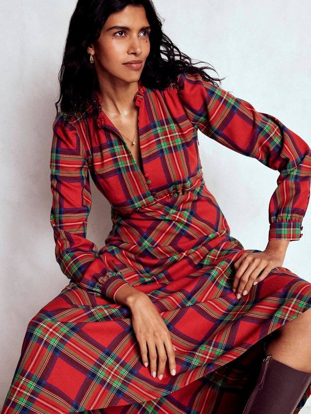 С чайным платьем вы точно не ошибётесь. Это платье миди с длинными рукавами от Boden дополнено V-образным вырезом и клетчатым узором, который невозможно пропустить.