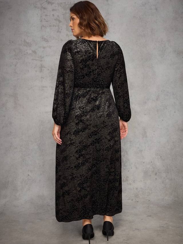 Жаккардовое платье Burnout с круглым вырезом, рюшами в форме замочной скважины и рукавами-блузонами. Платье изготовлено из жаккардовой ткани Burnout, имеет завышенную талию с частичной резинкой, полностью на подкладке и обеспечивает элегантный, подчеркивающий фигуру силуэт.