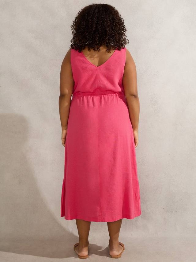 Это платье из льняной смеси с завязками на кулиске станет прекрасным и ярким дополнением к вашему гардеробу. Благодаря V-образному вырезу, это платье так приятно носить, что вы захотите носить его снова и снова. У него без рукавов, а завязка на талии обеспечивает свободную посадку. Длина миди и карманы в боковых швах обеспечивают повседневное удобство. Платье легко надевается через голову, поэтому вы можете мгновенно создать образ, который можно накинуть на прогулку.