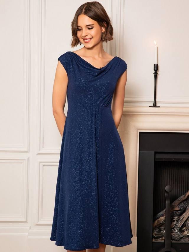 Появитесь в центре внимания в платье Darcie с воротником-хомутом. Это платье из мягкого, струящегося трикотажа с лёгким блеском идеально подойдёт для вечеринки и мгновенно добавит гламура. Благодаря элегантному воротнику-хомуту, рукавам-крылышкам и слегка расклешённой юбке, платье Darcie выгодно выделяется с любой стороны. Классическая основа со сверкающими деталями делает этот вариант идеальным выбором для праздничных встреч, зимних свадеб или изысканного вечернего образа.