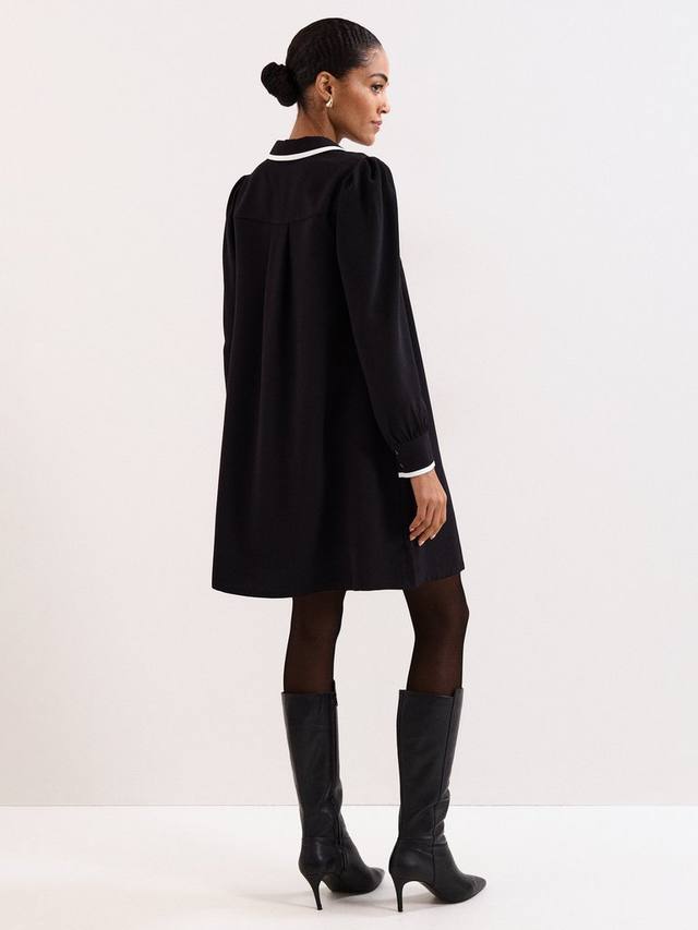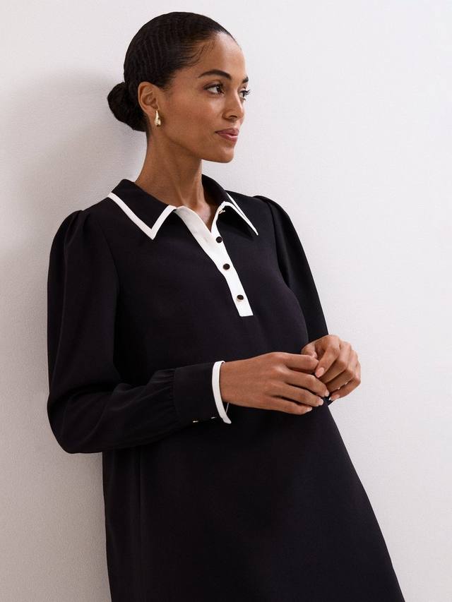 Это длинное мини-платье с рукавами-буфами от Phase Eight дополнено воротником-стойкой и выполнено в контрастном цветовом дизайне, который придает изделию современный вид.