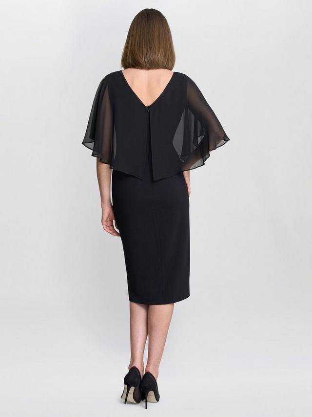 Платье Glennis — идеальный выбор для торжественных случаев, где изысканность играет ключевую роль. Это платье-футляр длиной до колена дополнено мягким струящимся шифоновым верхним слоем, который придает грациозность движению и обеспечивает прикрытие. Передняя деталь шифонового верхнего слоя добавляет изысканный штрих блеска.