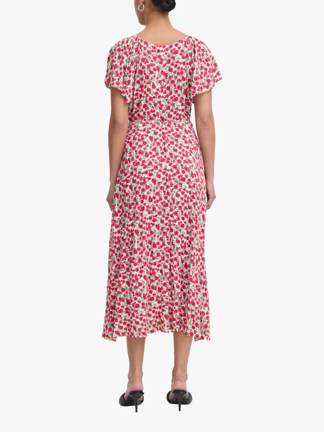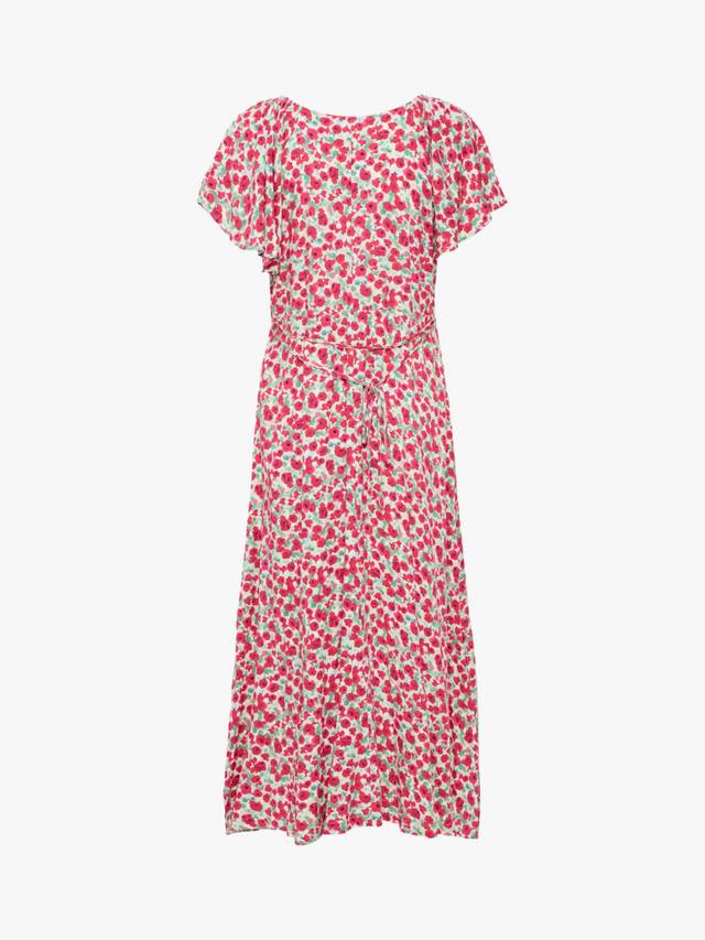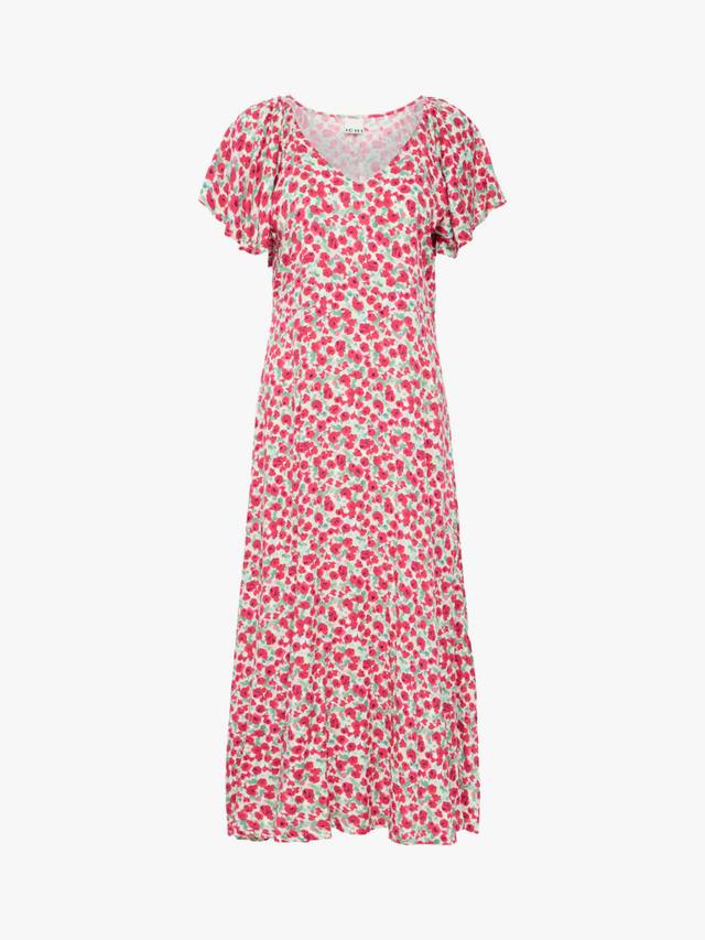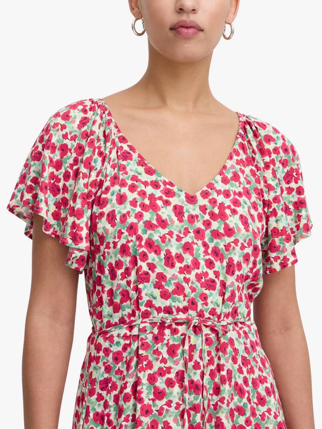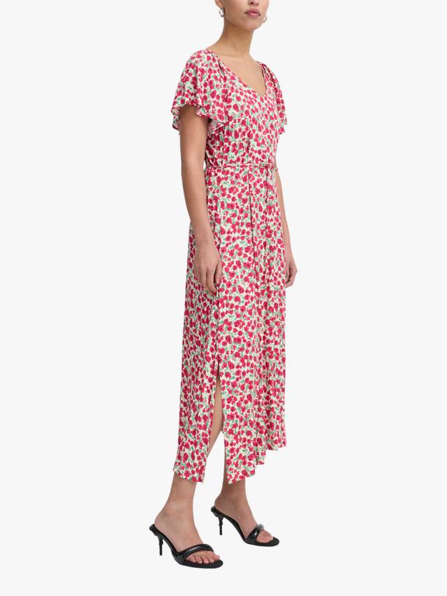 Это миди-платье от ICHI, подчеркивающее фигуру во всех нужных местах, сшито из лёгкой смесовой вискозы. Благодаря универсальному V-образному вырезу и коротким рукавам, оно расцветает радостью благодаря освежающему цветочному принту.