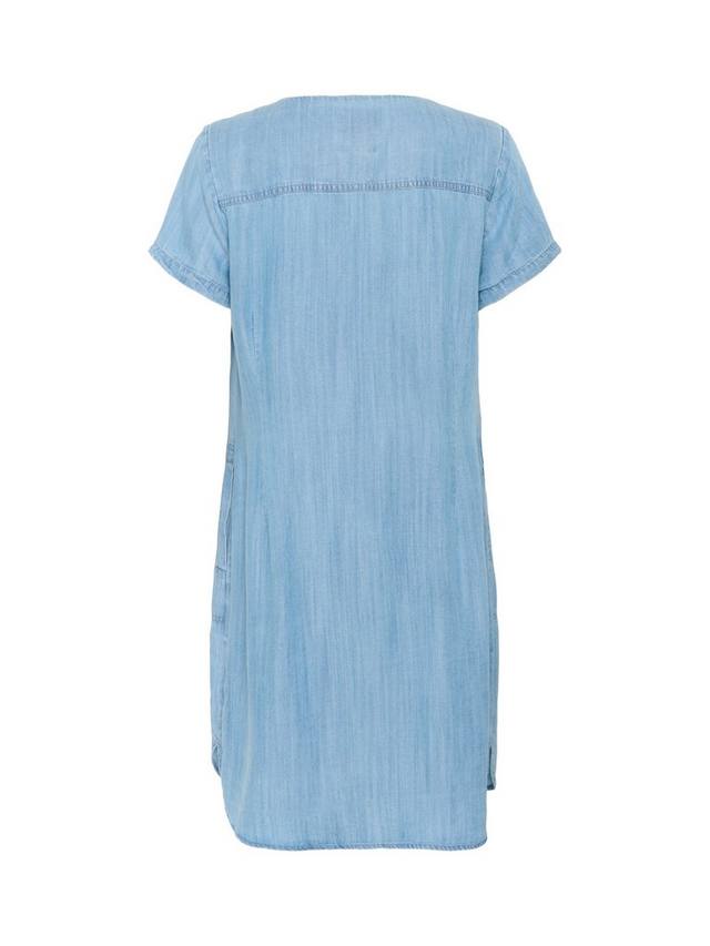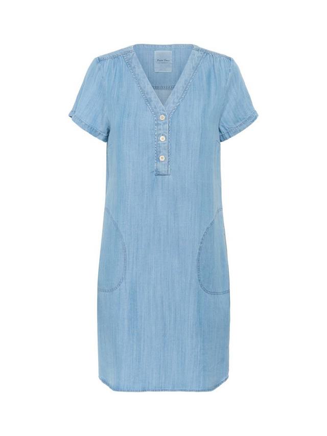 Это платье длиной до колена из Part Two, подчеркивающее фигуру во всех нужных местах, сшито из лёгкого лиоцелла с отделкой, напоминающей джинсовую ткань. Короткие рукава, застёжка на пуговицы на горловине и практичные карманы делают его одновременно функциональным и элегантным – идеально для тёплых летних дней или повседневной носки.