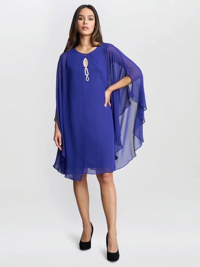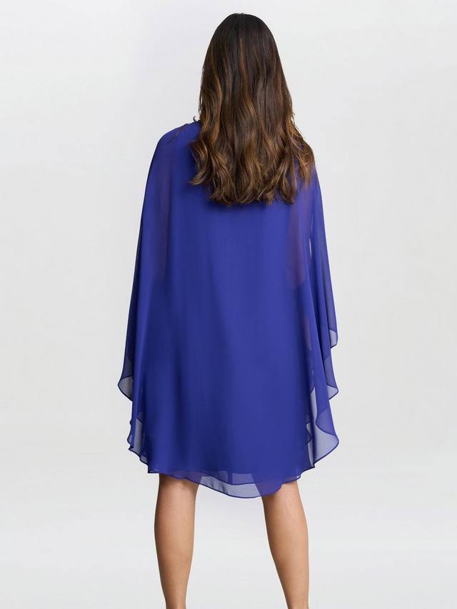 Великолепное платье и накидка от Gina Bacconi. Платье выполнено из лёгкого шифона, который обеспечит вам грациозность в любых движениях. Круглый вырез горловины украшен великолепной вышивкой бисером, которая добавляет ему блеска и гламура. Платье полностью на подкладке и застёгивается на потайную молнию сзади. Отдельная шифоновая накидка идеально ложится на лиф. Идеальный наряд для особого случая.