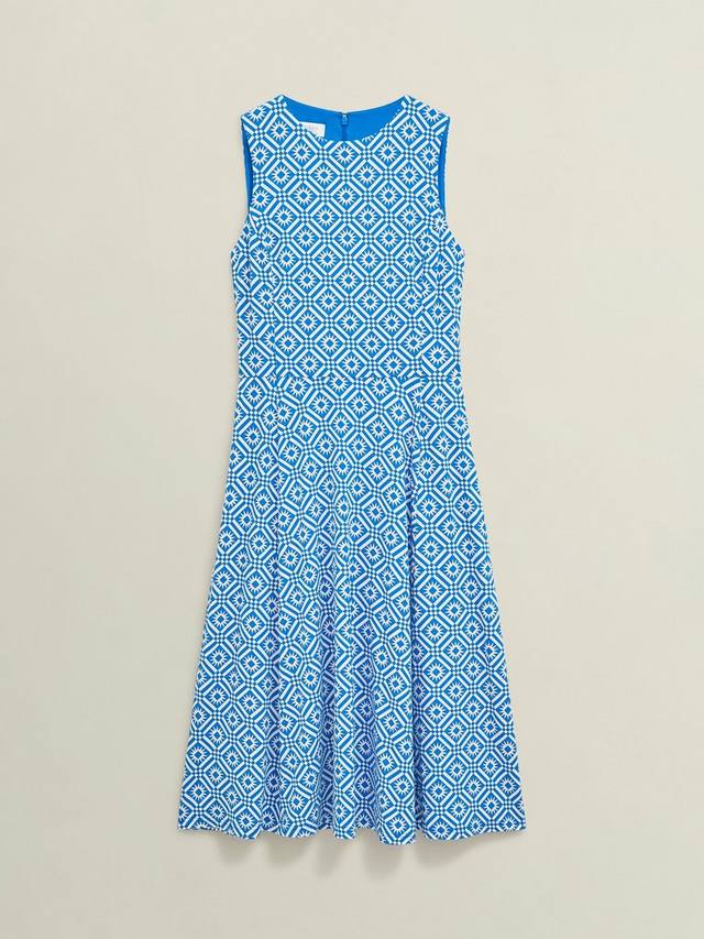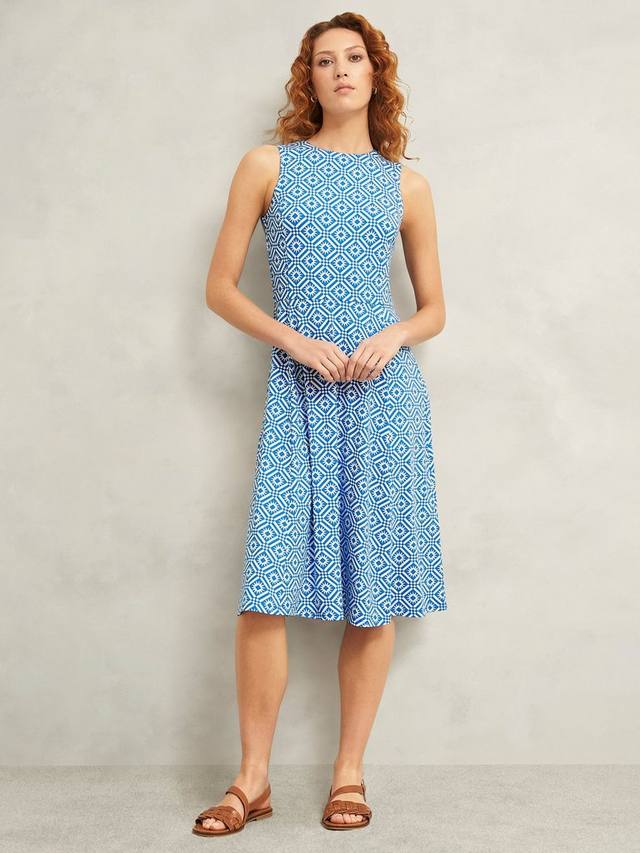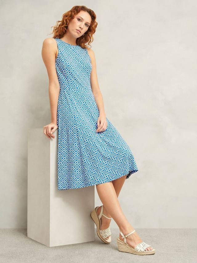 Геометрический принт сочетается с классическим облегающим силуэтом, расклешенным к низу. Насладитесь повседневной непринужденностью трикотажного платья Lisa от Hobbs. Мягкое и струящееся, это изделие без рукавов с круглым вырезом, юбкой А-силуэта и застежкой-молнией сзади.