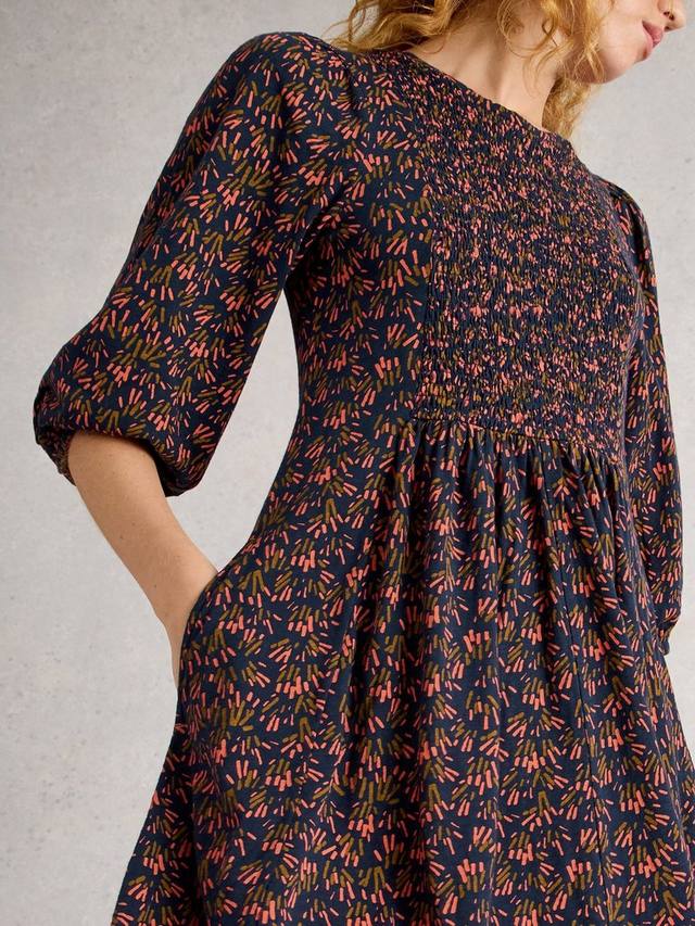 Добавьте выразительности своему силуэту благодаря облегающему крою с расклешенной юбкой. Это платье с принтом длиной до колена от White Stuff отличается эластичной сборкой спереди и рукавами до локтя. Платье выполнено из чистого хлопка и обеспечивает комфорт в течение всего дня.