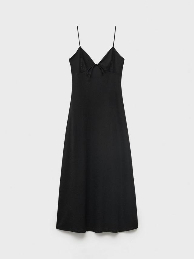 Простой фасон комбинаций с плавно расклешенным А-образным подолом. Это платье миди на тонких бретельках от Mango имеет завязывающийся V-образный вырез, а лёгкий однотонный крой позволяет носить его с чем угодно.