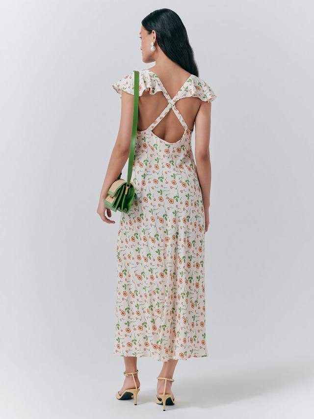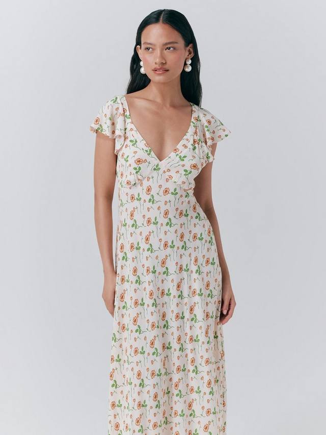 Это платье миди от Ghost с короткими рукавами, V-образным вырезом и расклешенным подолом. Украшенное цветочным принтом, это изделие вне времени.